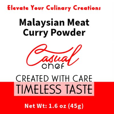 Malaysian Meat Curry Powder is a blend of aromatic spices including coriander, cumin, fennel, turmeric, chili, and more. Perfect for adding rich, flavorful depth to meat dishes like chicken, beef, and lamb curries.